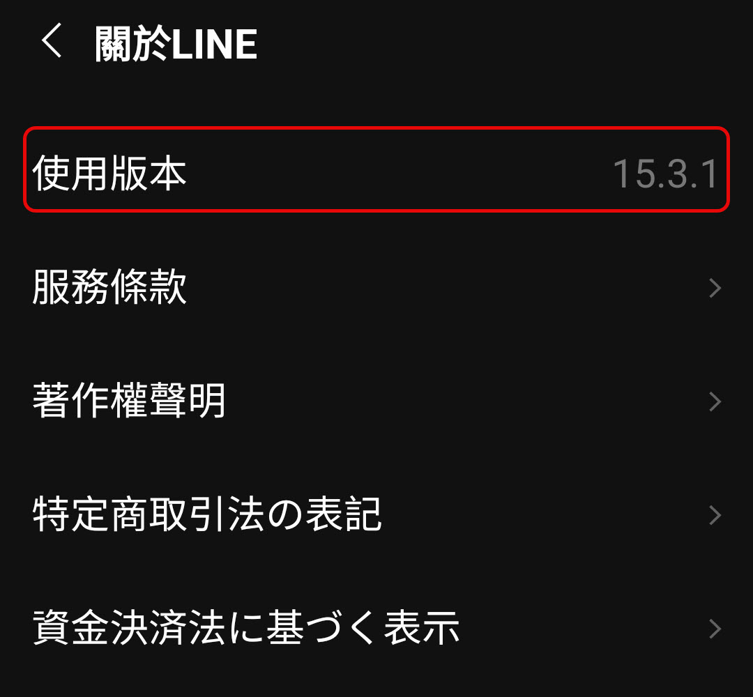 如果LINE未登入(這才是可能的狀況),也可用Android手機的「應用程式資訊」(通常在「設定」、「應用程式」裡,但Android版本眾多,無法一概而論)功能查詢版本。